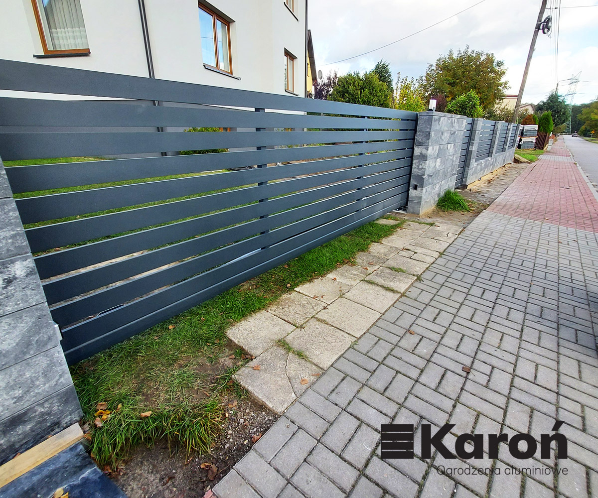 W Gliwicach wykonaliśmy nowoczesne ogrodzenie aluminiowe panelowe oparte na szerokich profilach 150 mm. Tego typu panele zapewniają solidny wygląd oraz wysoki stopień prywatności, a jednocześnie prezentują się lekko i elegancko dzięki poziomemu układowi.